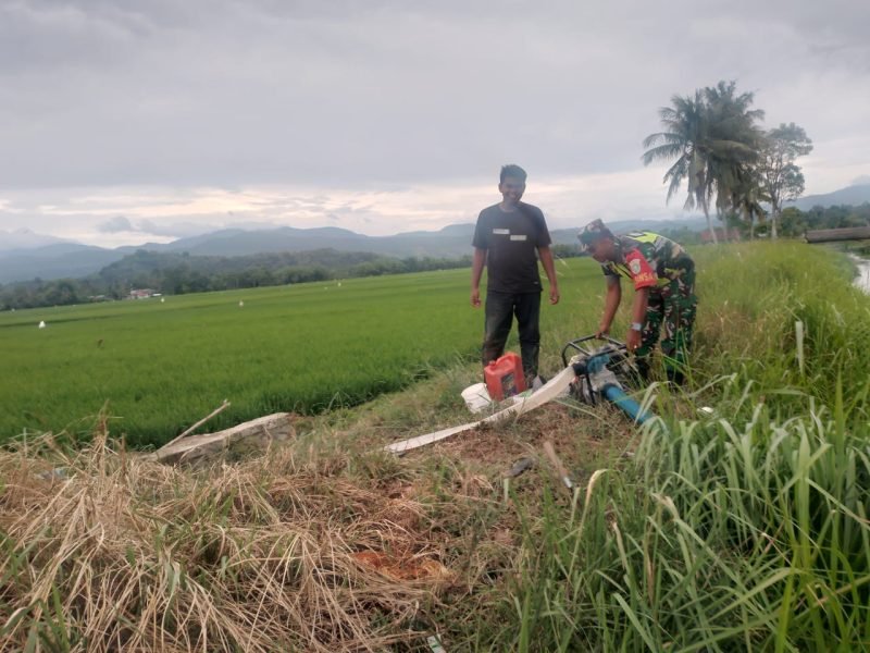 Pidie Aceh, Beritafakta.id – Babinsa Koramil 10/Glumpang Tiga Kodim 0102/Pidie, Sertu M. Iqbal melaksanakan pendampingan petani serta atasi kekeringan sawah.