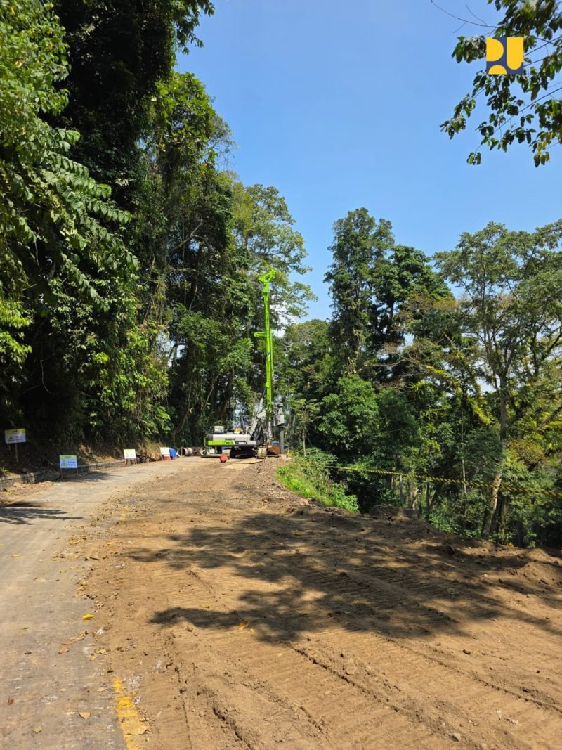 Penanganan meliputi perkuatan lereng bawah dengan konstruksi bored pile sebanyak 55 titik sepanjang 115 meter serta perbaikan geometri jalan untuk meningkatkan keselamatan pengguna jalan. Untuk mempercepat pekerjaan, telah dikerahkan 2 unit mesin bore pile dan percepatan pabrikasi besi tulangan.