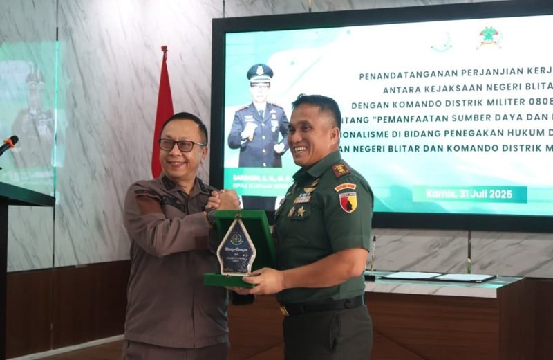Blitar Jatim, Beritafakta.id – Dalam rangka memperkuat sinergi antarinstansi di bidang penegakan hukum, Kejaksaan Negeri Blitar dan Kodim 0808/Blitar melaksanakan penandatanganan perjanjian kerjasama (PKS) pada Kamis (31/7/2025) bertempat di Aula Kantor Kejaksaan Negeri Blitar, Jl. Sudanco Supriyadi, Kelurahan Bendogerit, Kecamatan Sananwetan, Kota Blitar. Kegiatan ini diikuti oleh sekitar 50 peserta dari kedua institusi.