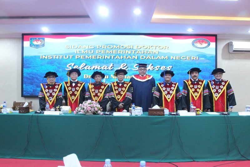 “Berdasarkan hasil pengujian dan keputusan sidang, Promovendus Lalu Niqman Zahir dinyatakan lulus mendapat predikat sangat memuaskan serta berhak menyandang gelar Doktor Ilmu Pemerintahan menjadi lulusan doktor ke-345 pada program pascasarjana IPDN,” tutup Muhadam.