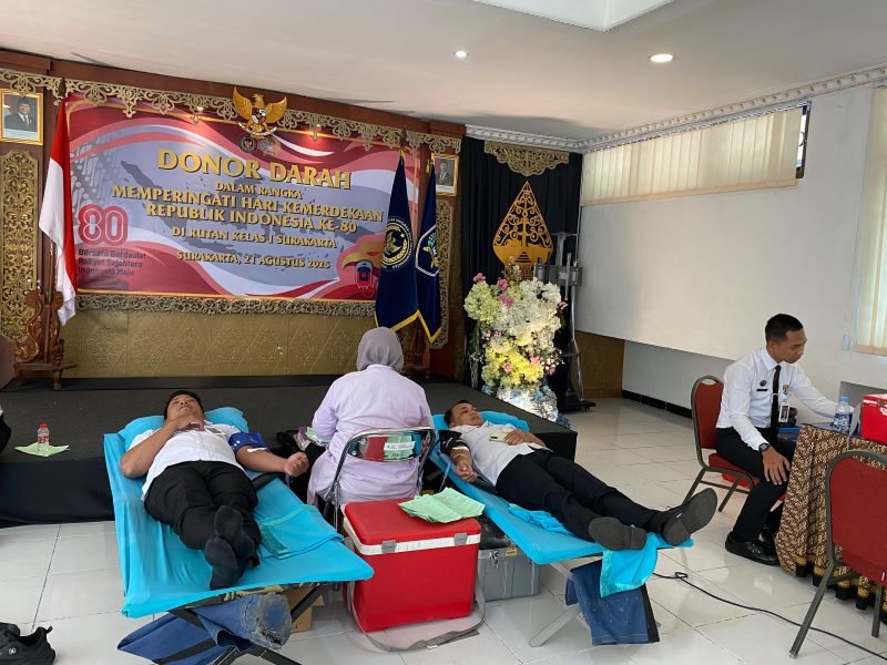 Surakarta Jateng, Beritafakta.id – Dalam rangka memperingati Hari Ulang Tahun ke-80 Republik Indonesia sekaligus sebagai wujud kepedulian kepada sesama, Rutan Kelas I Surakarta Kantor Wilayah Direktorat Jenderal Pemasyarakatan Jawa Tengah bekerja sama dengan Palang Merah Indonesia (PMI) Kota Surakarta menggelar aksi donor darah pada Kamis (21/08).