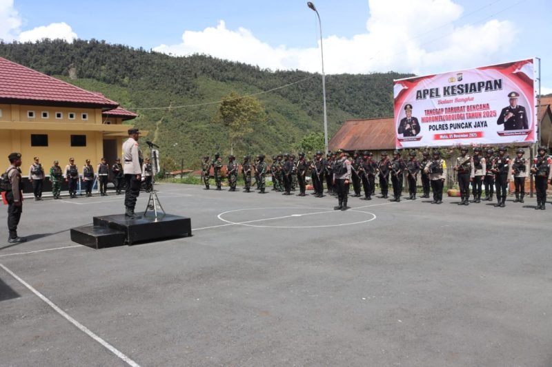 Puncak Jaya, Beritafakta.id – Bertempat di Lapangan Apel Mako Polres Puncak Jaya, Wakil Kepala Kepolisian Resor Puncak Jaya AKP Misken Darius memimpin Upacara Kesiapan dalam rangka Tanggap Darurat Bencana Hidrometeorologi Tahun 2025, Rabu (05 November 2025).