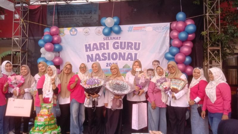 Kota Tangerang — SD Negeri Tajur 2 Ciledug menggelar perayaan Hari Guru Nasional (HGN) 2025 dengan meriah di halaman sekolah pada Rabu, 26 November 2025. Kegiatan tersebut melibatkan seluruh siswa, guru, komite sekolah, serta wali murid.