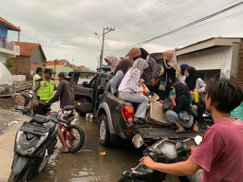 Brebes, Beritafakta.id — Cuaca ekstrem dan banjir rob yang masih melanda wilayah pesisir Brebes membuat aktivitas warga terganggu, termasuk anak-anak yang kesulitan berangkat ke sekolah. Menyikapi kondisi tersebut, Polres Brebes melalui Polsek Losari menerjunkan armada truk dan mobil patroli untuk membantu mobilitas warga sejak 1 Desember 2025.
