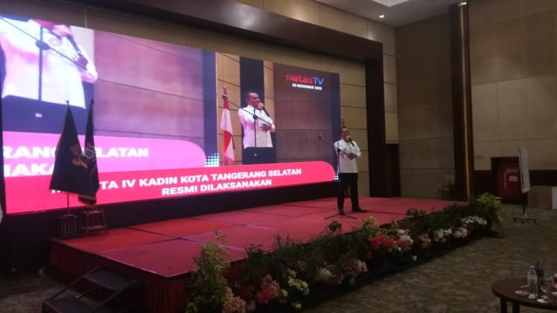 Tangerang Selatan — Ketua KADIN Tangerang Selatan terpilih, Marhadi, S.E., M.M., memaparkan sejumlah program prioritas usai memenangkan Mukota IV dengan dukungan 139 suara.