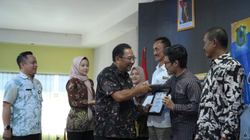 Foto: Momen Gebyar Pajak Daerah Kabupaten Banjarnegara Tahun 2025 saat Kepala Desa Lengkong, Mahadi, menerima penghargaan secara simbolis dari Pj Sekda Banjarnegara, Tursiman.(bas)