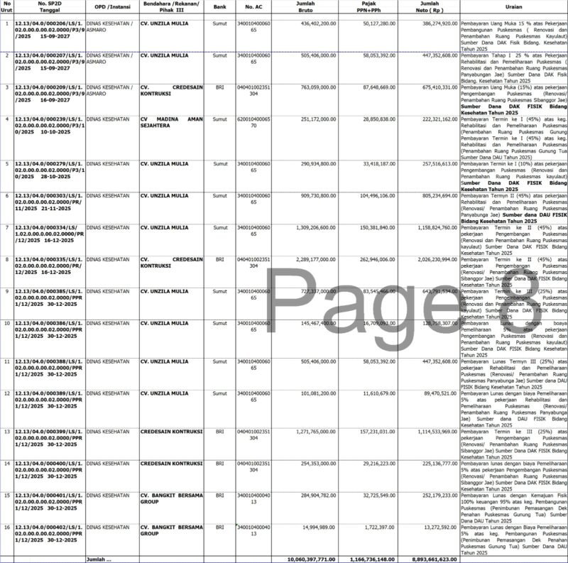 Mandailing Natal — Aroma tak sedap tercium dari proyek pembangunan infrastruktur kesehatan di Kabupaten Mandailing Natal (Madina). Sedikitnya tiga proyek strategis di bawah naungan Dinas Kesehatan Madina dilaporkan bermasalah dan kuat terindikasi merugikan keuangan negara. Kondisi ini memicu desakan keras agar Komisi Pemberantasan Korupsi (KPK) segera turun tangan melakukan investigasi menyeluruh.