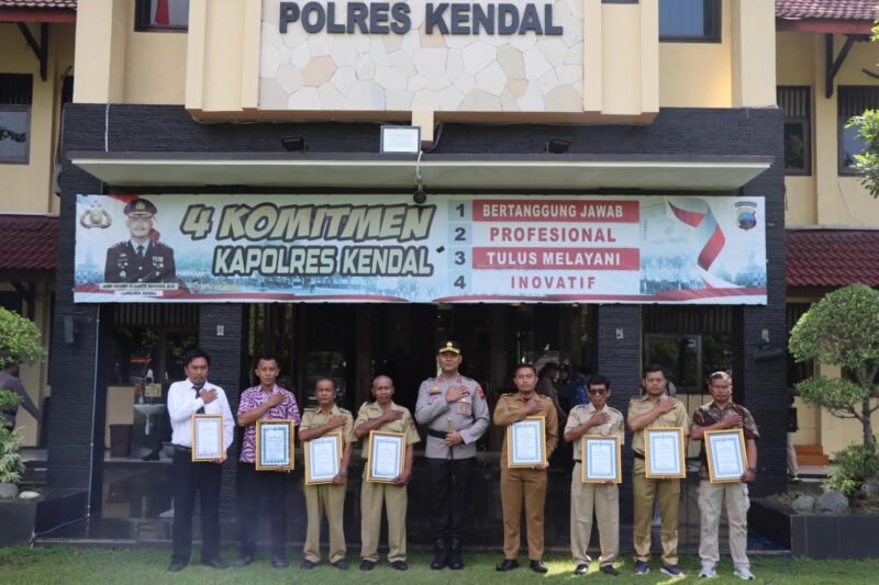 KENDAL — Kepolisian Resor Kendal menggelar upacara bendera dalam rangka Hari Kesadaran Nasional sekaligus memberikan penghargaan kepada anggota berprestasi dan unsur masyarakat yang berperan aktif dalam kegiatan kemanusiaan, Senin (19/1/2026), di halaman Mapolres Kendal.
