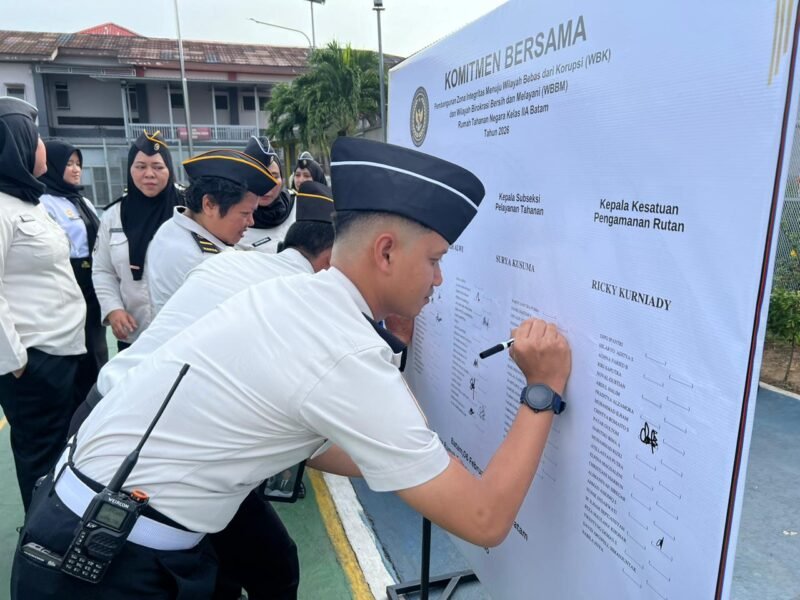 Batam — Rumah Tahanan Negara (Rutan) Kelas IIA Batam menegaskan komitmennya dalam mewujudkan birokrasi yang bersih dan berintegritas melalui penandatanganan Komitmen Bersama Pembangunan Zona Integritas serta Pakta Integritas Tahun 2026. Kegiatan tersebut dilaksanakan di lapangan serbaguna Rutan Kelas IIA Batam, Kamis (6/2/2026).