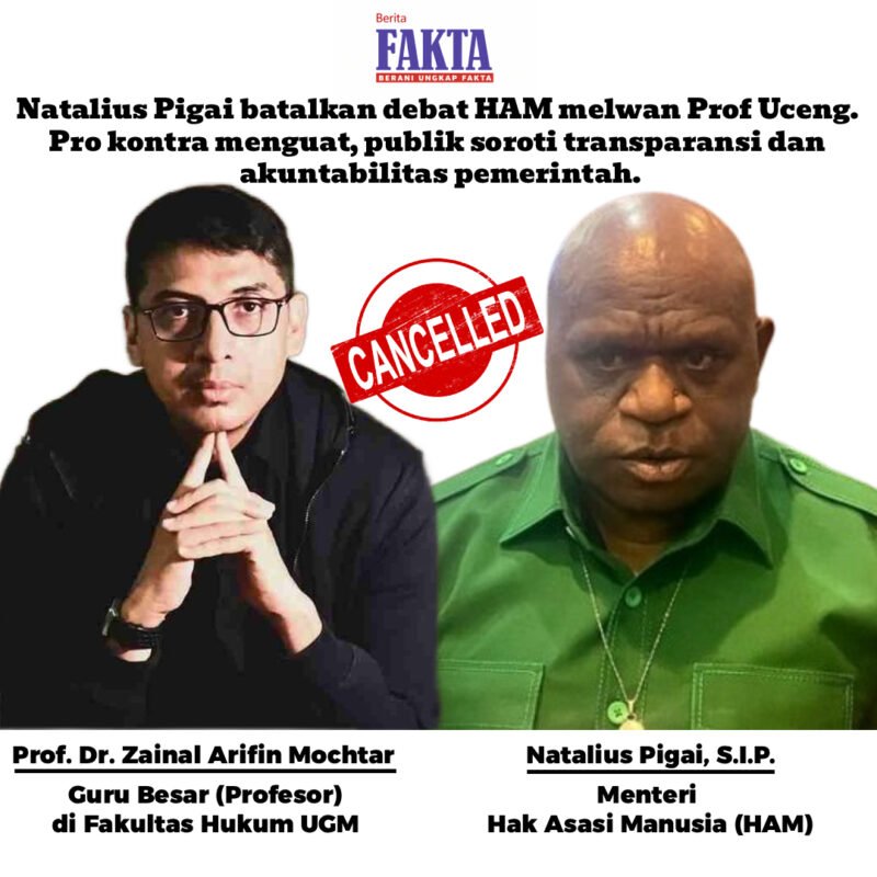 Jakarta, beritafakta.id- Rencana debat soal Hak Asasi Manusia (HAM) yang banyak orang tunggu akhirnya batal. Menteri HAM, Natalius Pigai, memutuskan tidak hadir dalam forum yang seharusnya mempertemukannya dengan Guru Besar Hukum Tata Negara UGM, Zainal Arifin Mochtar.