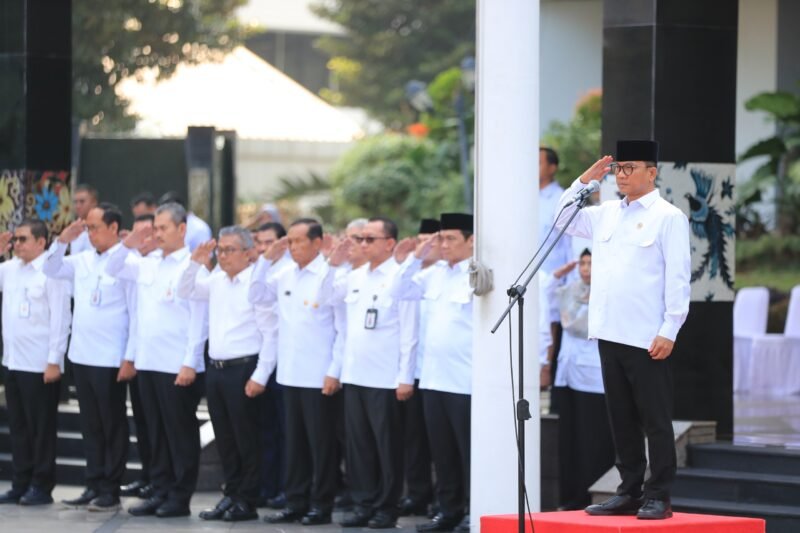 Jakarta, Beritafakta.id- Menteri Desa dan Pembangunan Daerah Tertinggal (Mendes PDT) Yandri Susanto bersama Wakil Mendes PDT Ahmad Riza Patria menghadiri Apel Bersama di lingkungan Kemendes PDT dan Halalbilhalal Idul Fitri 1447 Hijriyah di Lapangan parkir Kantor Kemendes Kalibata, Senin (30/3/2026).