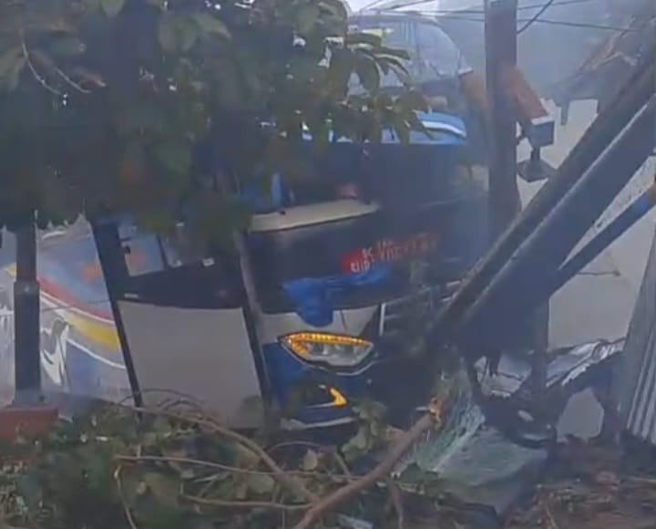 Dorongan efek benturan itu mengakibatkan bus bergerak liar beberapa puluh meter ke depan. Laju bus baru berhenti setelah melibas tanaman hias peneduh jalan, bangku taman, tiang listrik, rumah warga dan beberapa tiang utilitas penopang jaringan telepon, listrik, wifi dan lainnya.