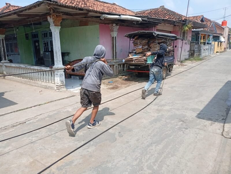 Indramayu | beritafakta.id — Warga RT 002/RW 001 Blok Bucu, Desa Karangasem, Kecamatan Terisi, Kabupaten Indramayu, menghentikan kegiatan pemasangan tiang dan kabel internet yang melintas di lingkungan permukiman, Kamis (23/4/2026). Tindakan tersebut dilakukan karena pemasangan diduga belum mengantongi izin resmi dari instansi terkait.