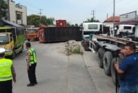 BREBES – Sebuah truk kontainer terguling di Jalur Pantura Brebes, Jawa Tengah, Sabtu dini hari (10/1/2026), sekitar pukul 03.00 WIB. Lokasi kejadian berada di…